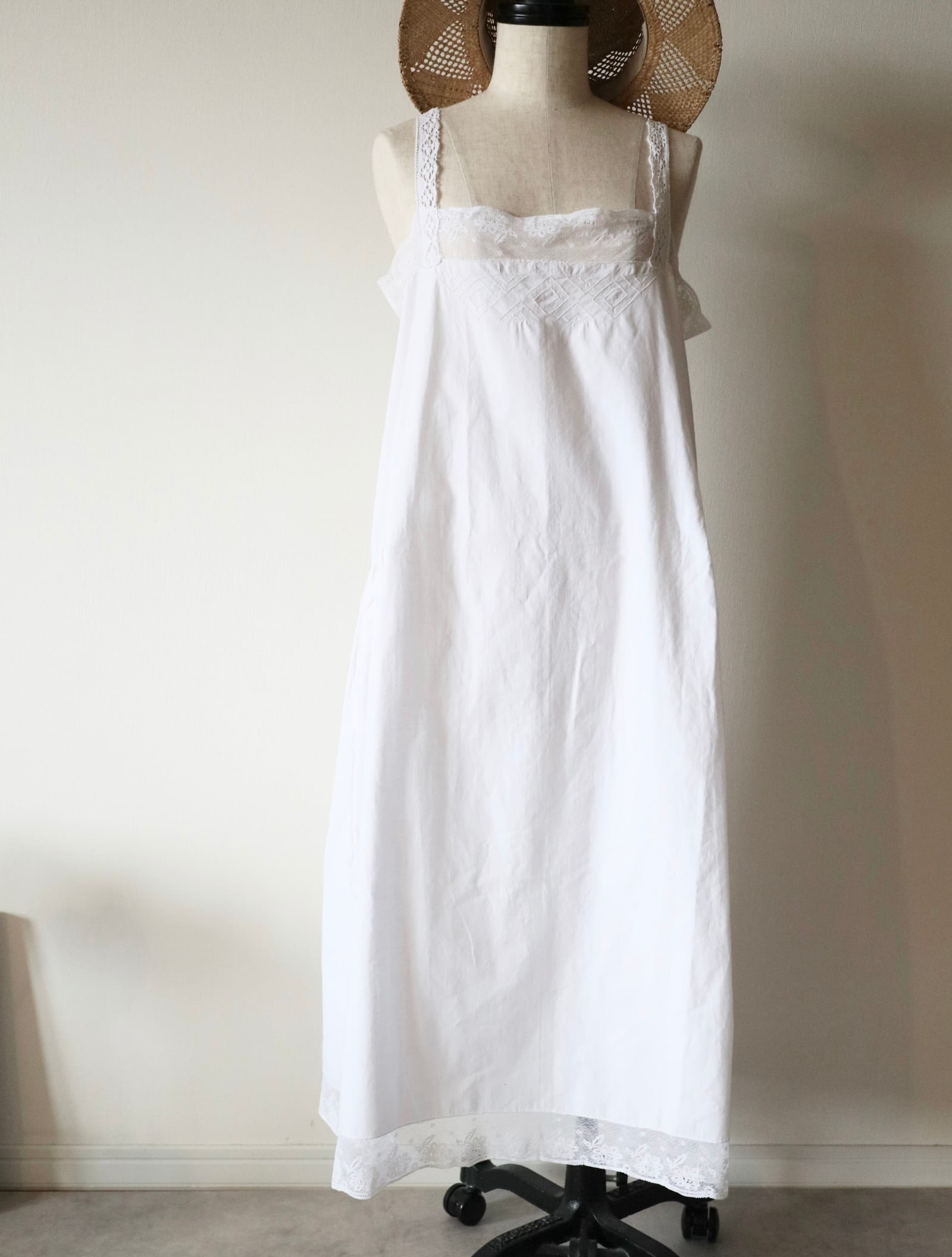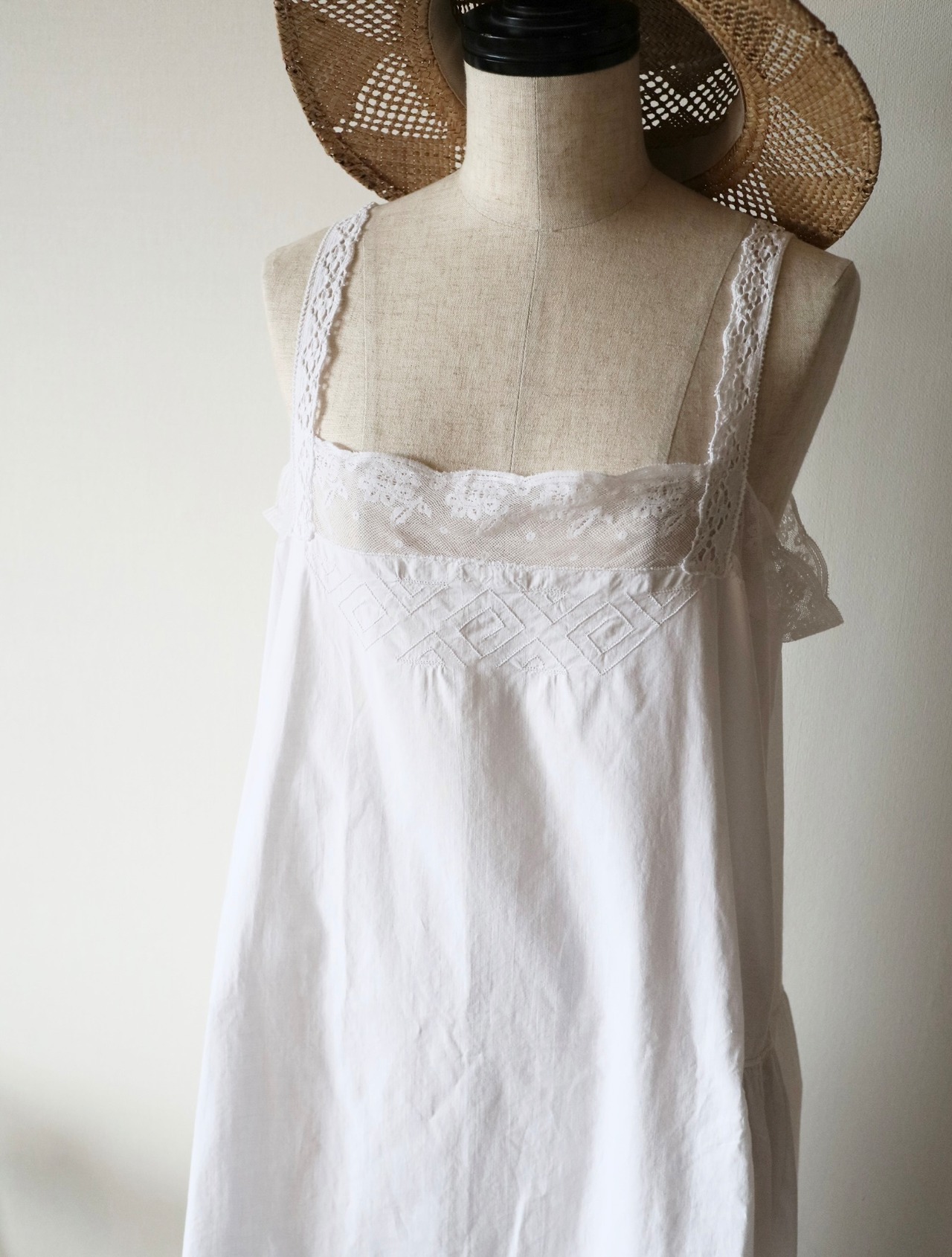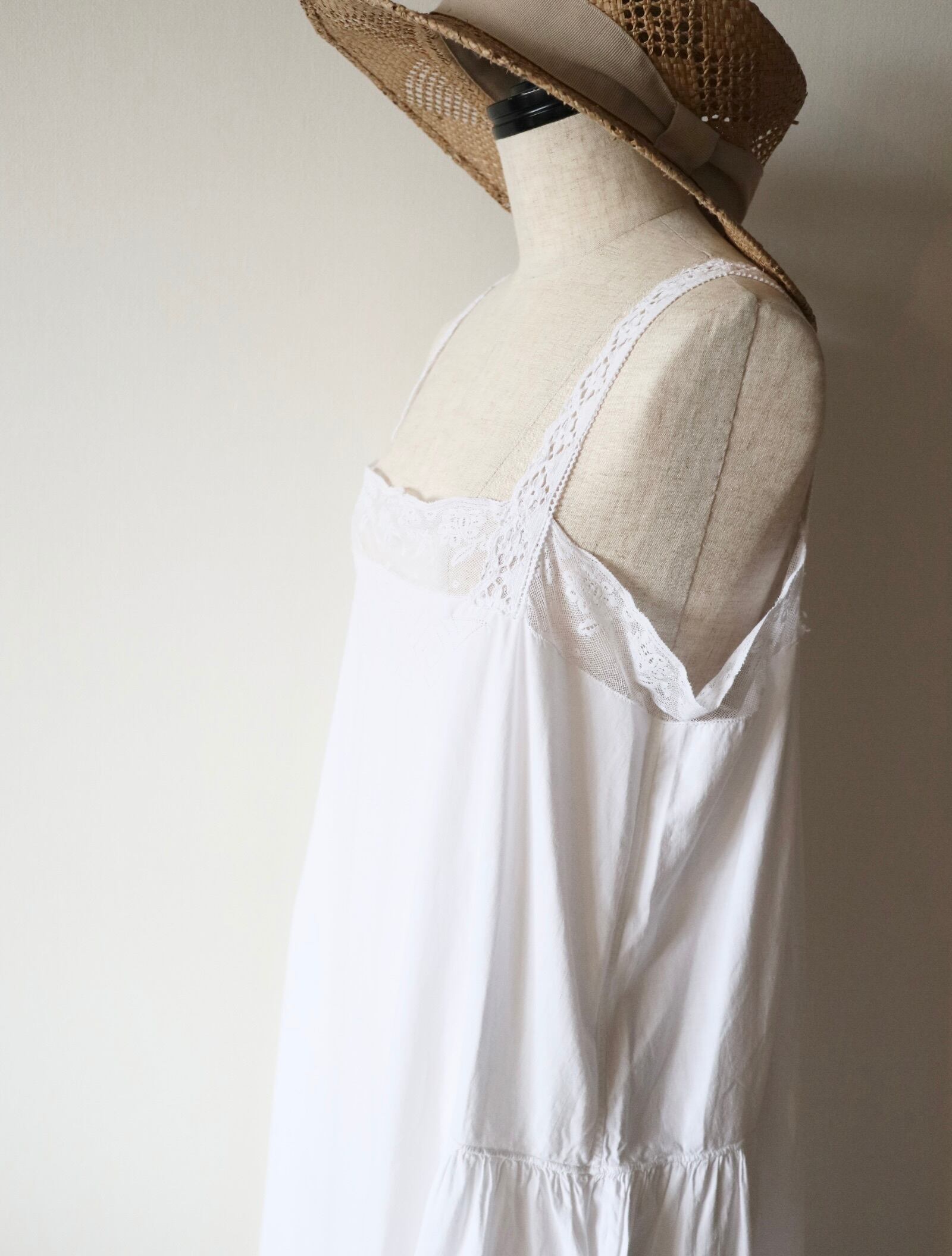 胸元と裾のヴァラシエンヌレースがとても美しいAntiqueキャミソールドレスです。ストラップのクロッシェレースや胸元のはしごレースと様々なレースの組み合わせがとっても贅沢な1枚です♡