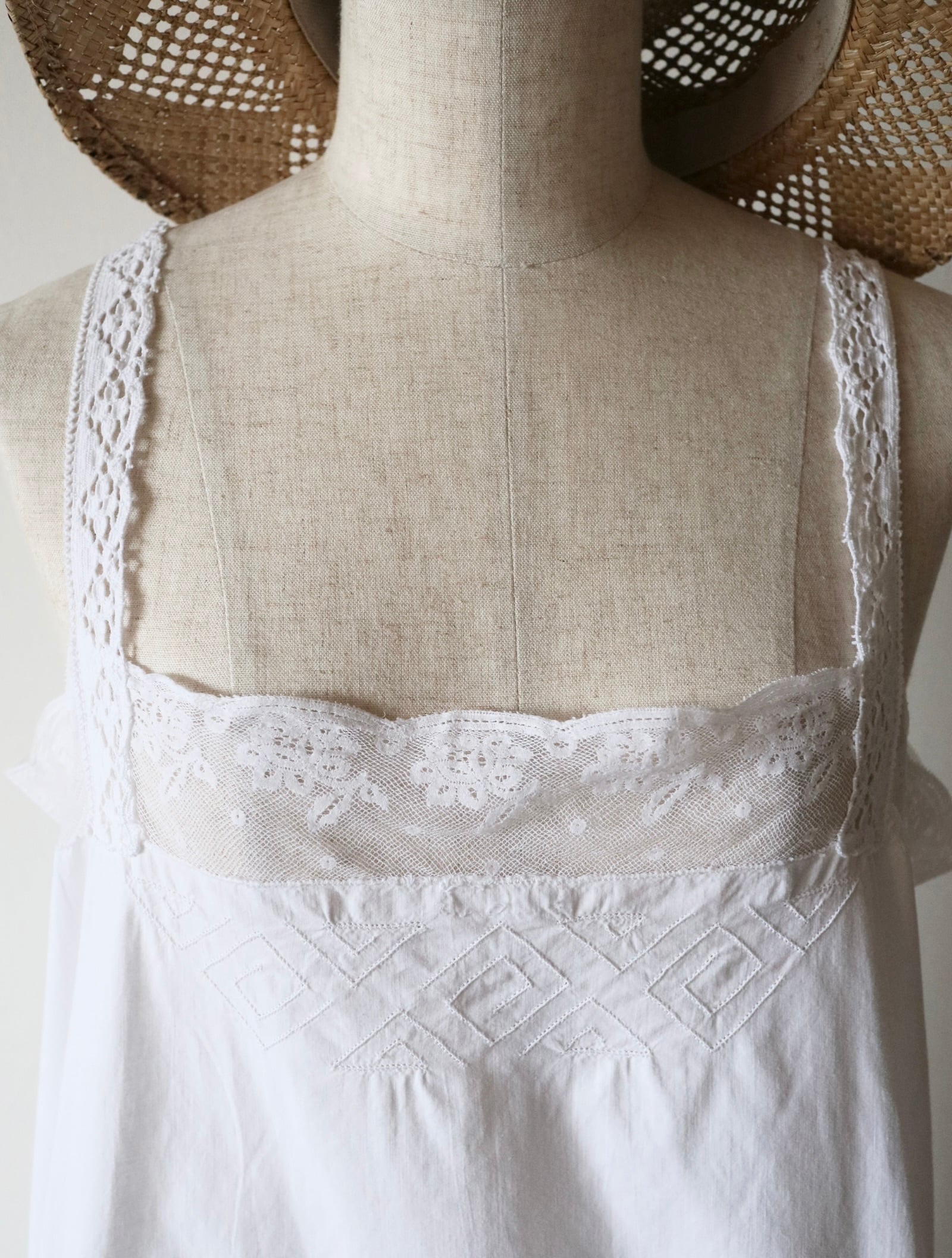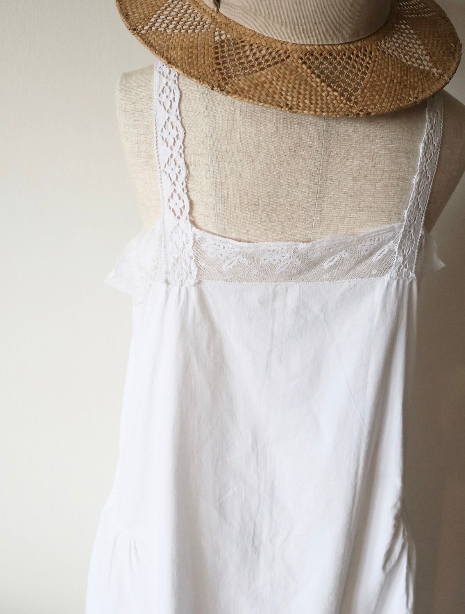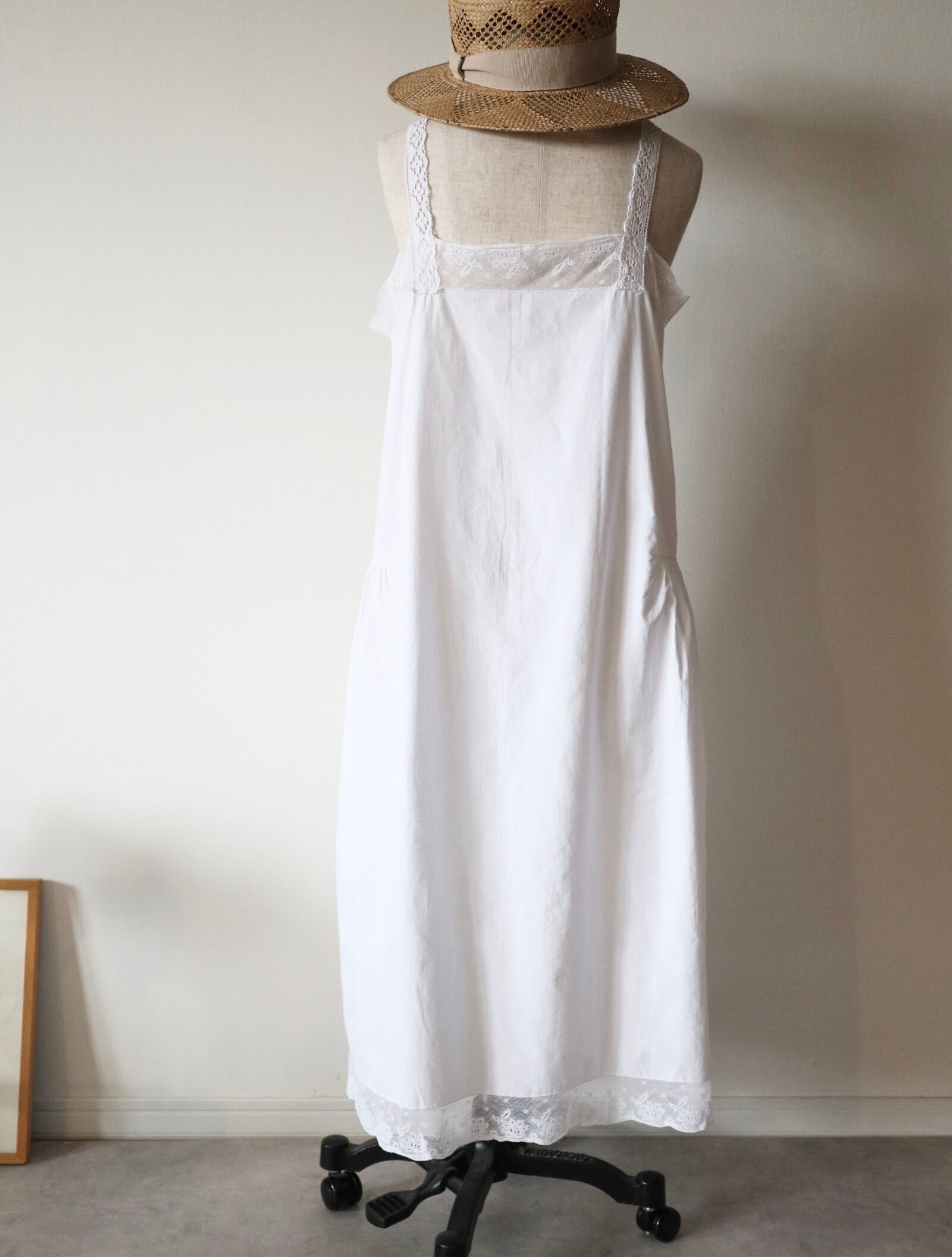 胸元と裾のヴァラシエンヌレースがとても美しいAntiqueキャミソールドレスです。ストラップのクロッシェレースや胸元のはしごレースと様々なレースの組み合わせがとっても贅沢な1枚です♡