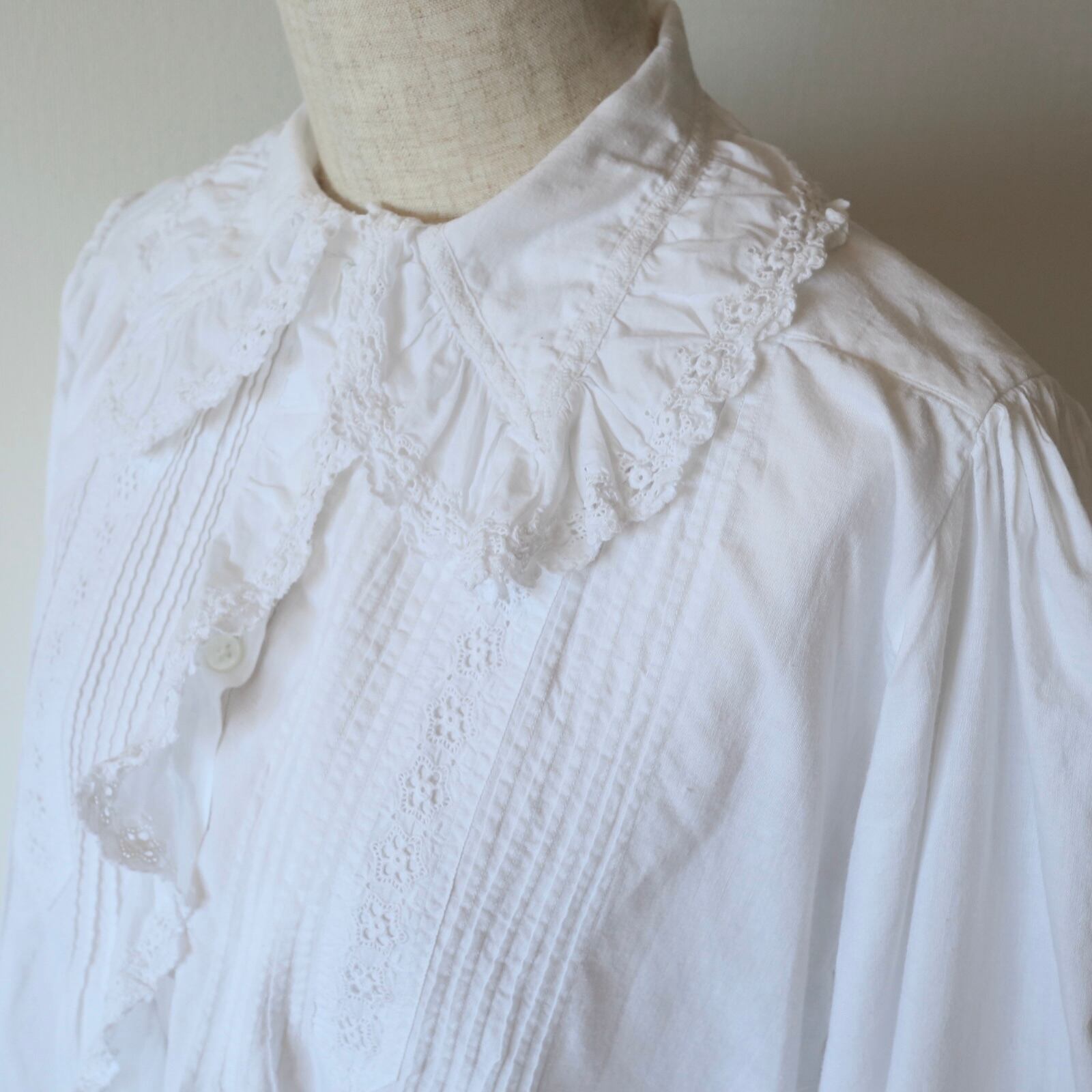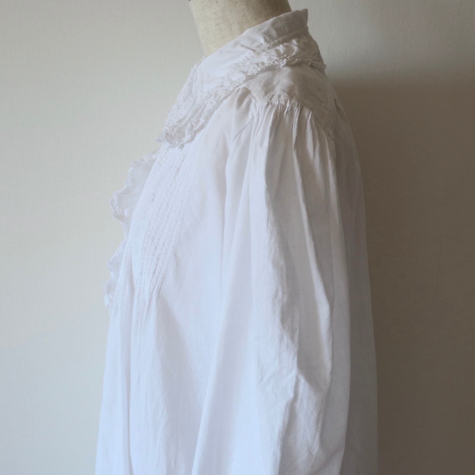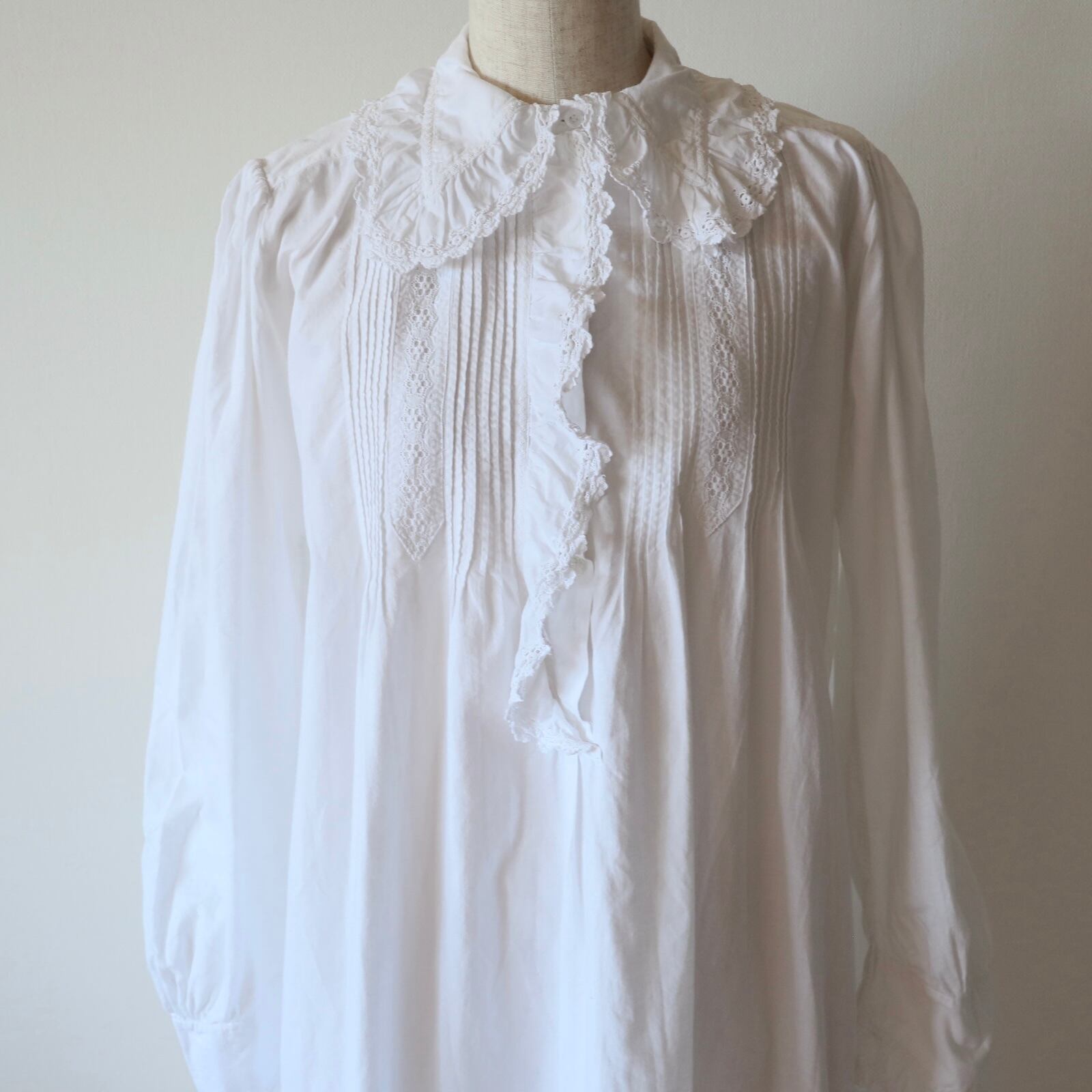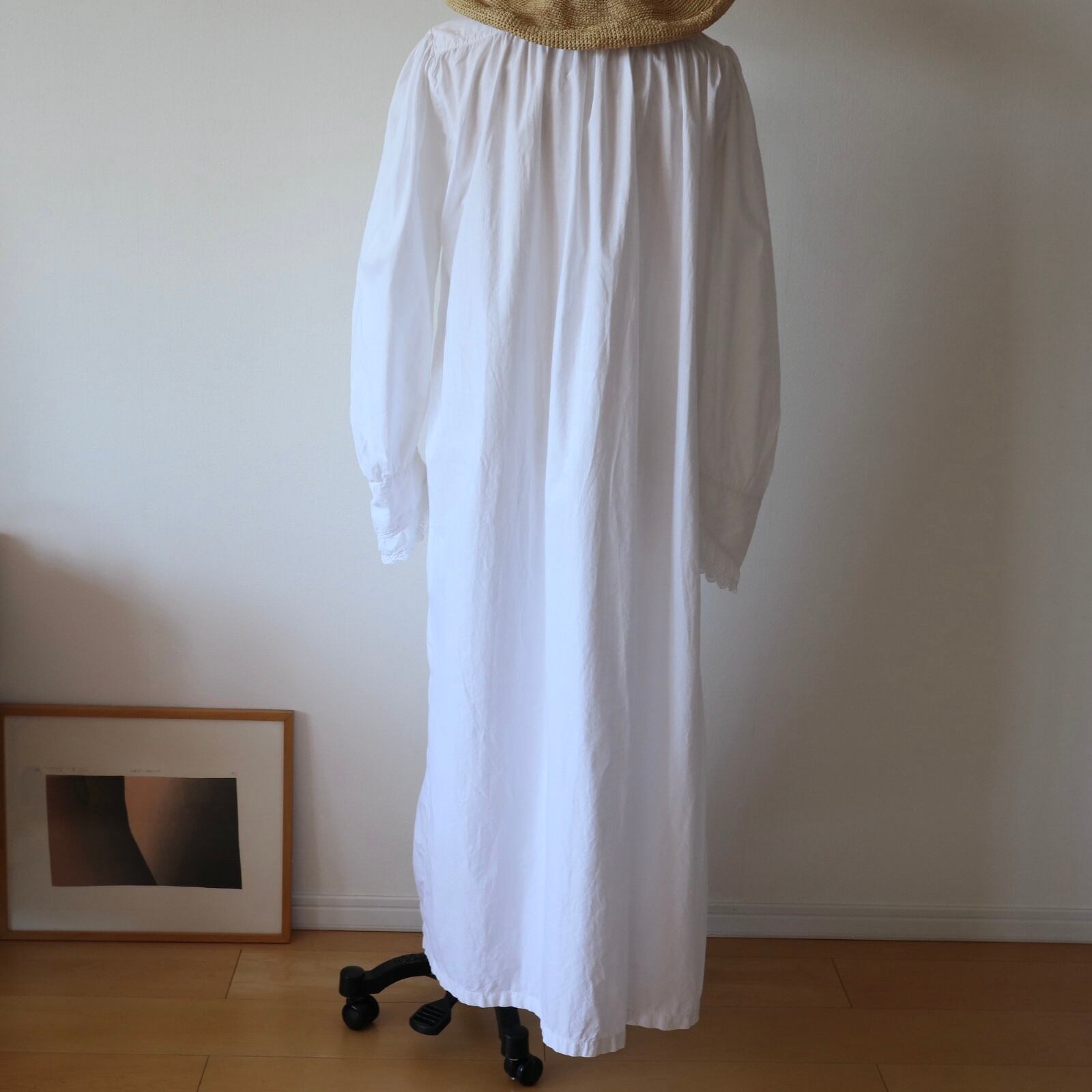 1860~1900年頃のアンティークナイトドレスがイギリスより届きました。大きな襟や前立て、袖口のフリルは美しく生地はしっかり目のcottonです。王道にして一番人気のビッグカラーをお探しの方に是非おススメの1枚です。
