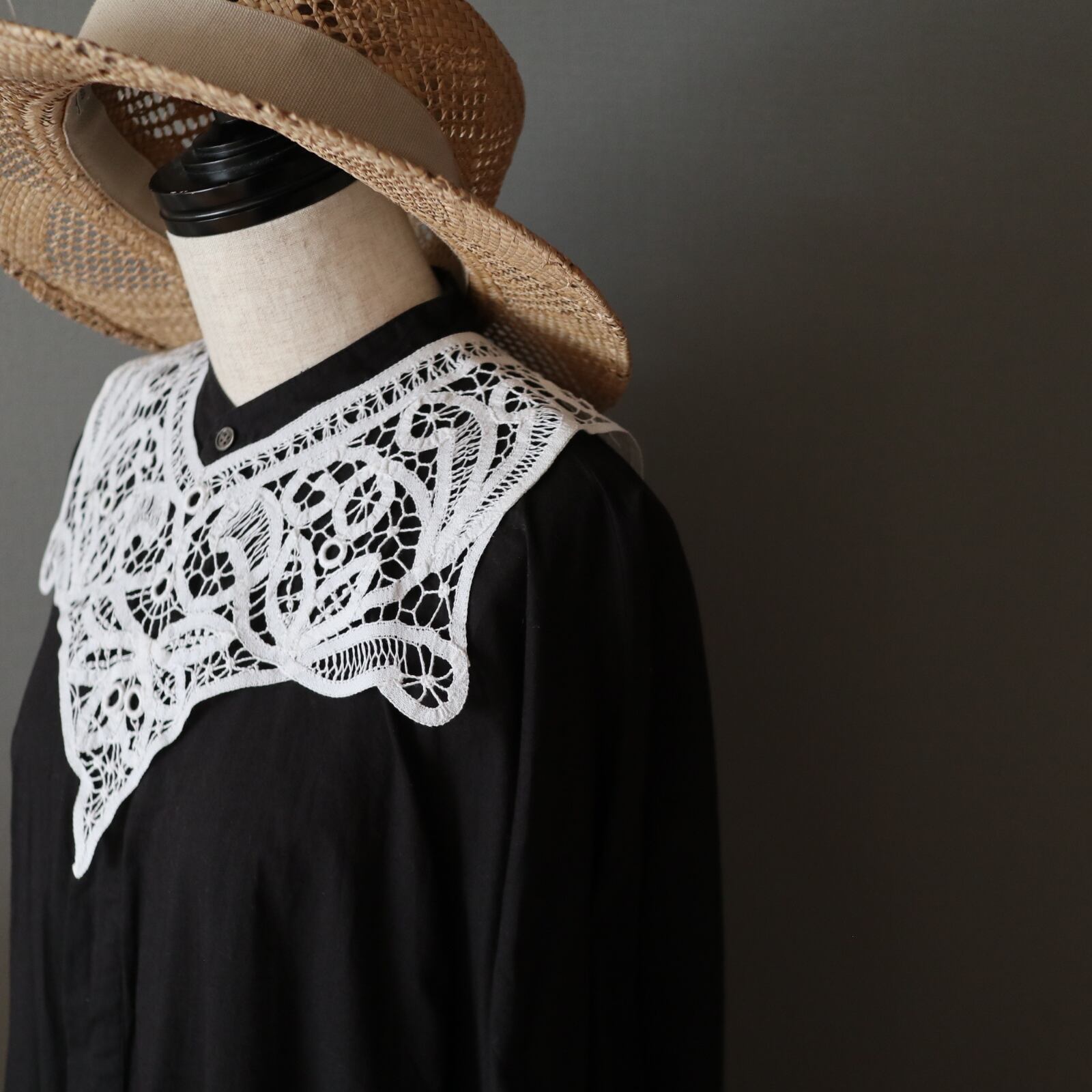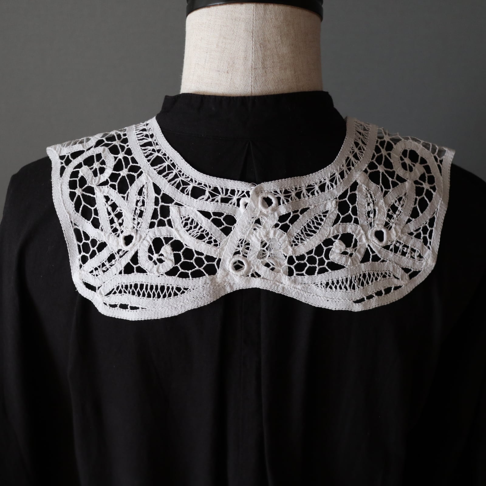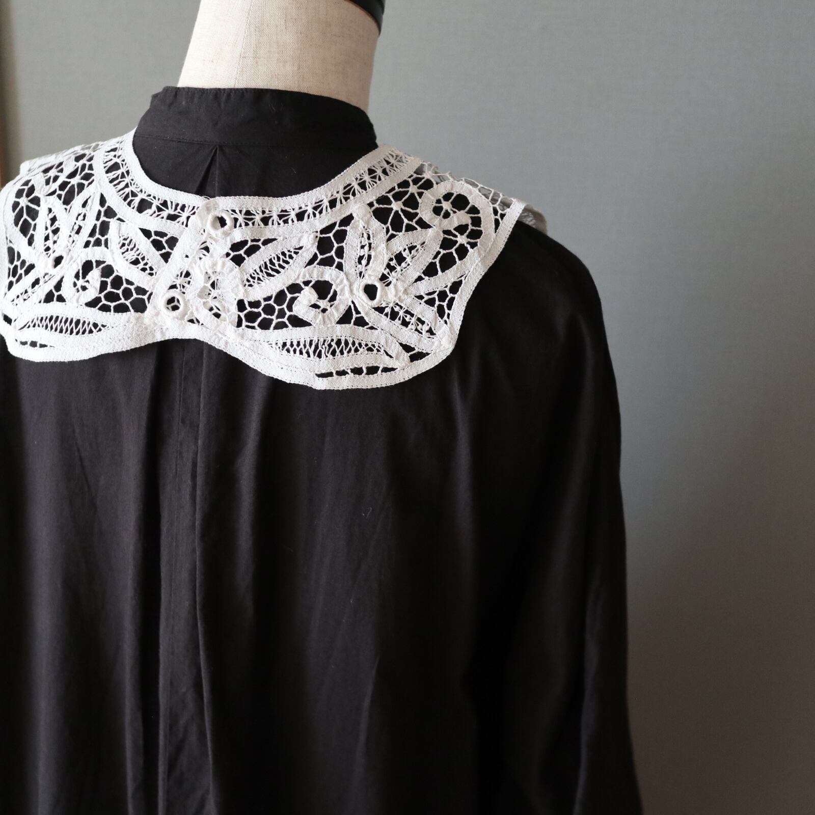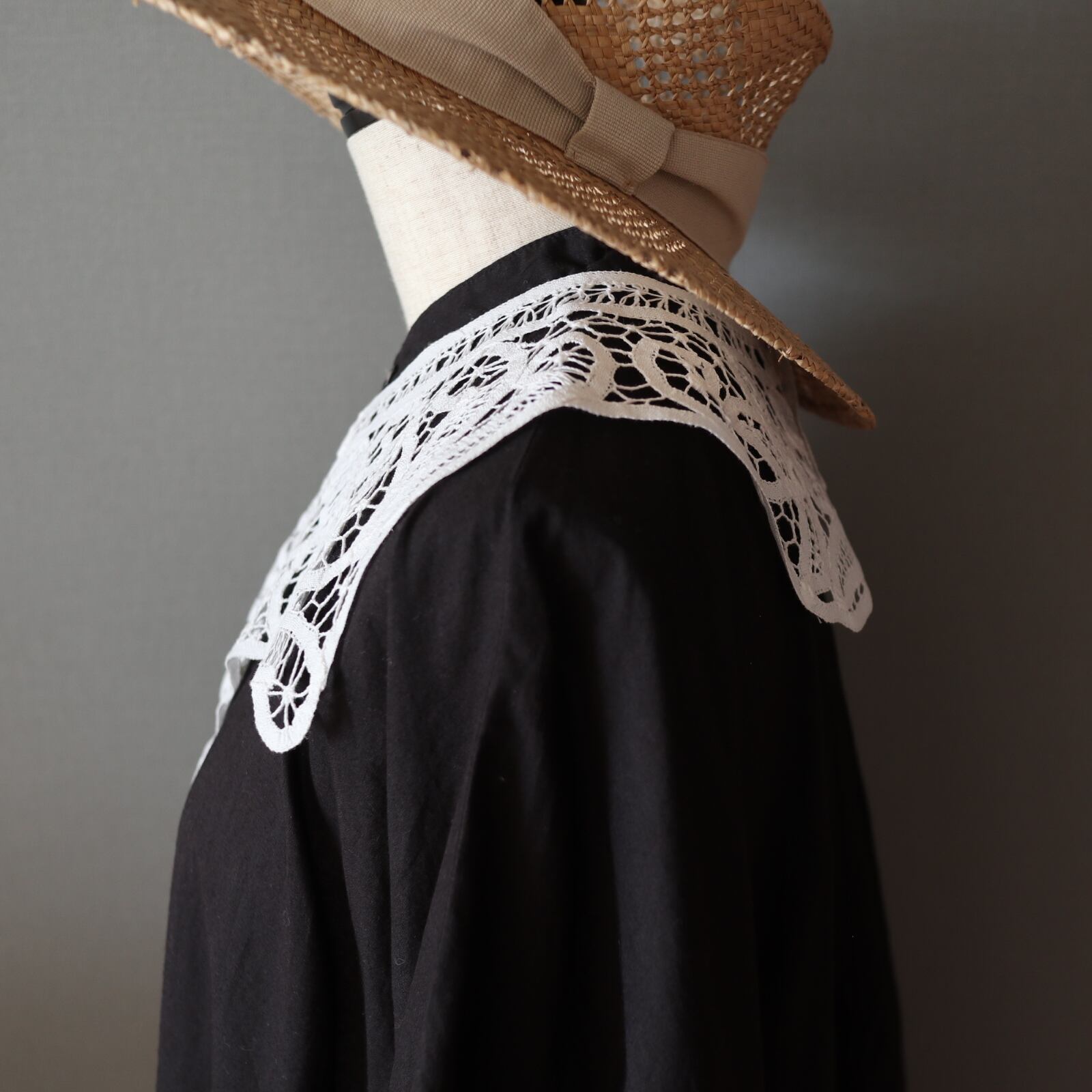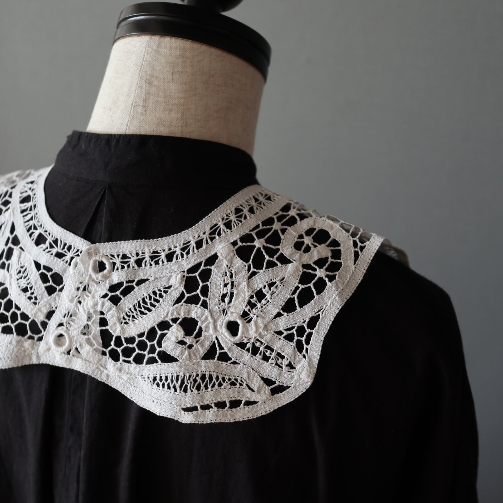 大人気バテンレースのヴィンテージレースカラーです。ヴィンテージですがデットストックの為とてもきれいです。シャツワンピやスウェット、ニットetc…どんなお洋服にもレイヤードしやすい優秀なデザイン。大人っぽい雰囲気があるのでプライベートに限らずオフィスでのご使用もおススメです。