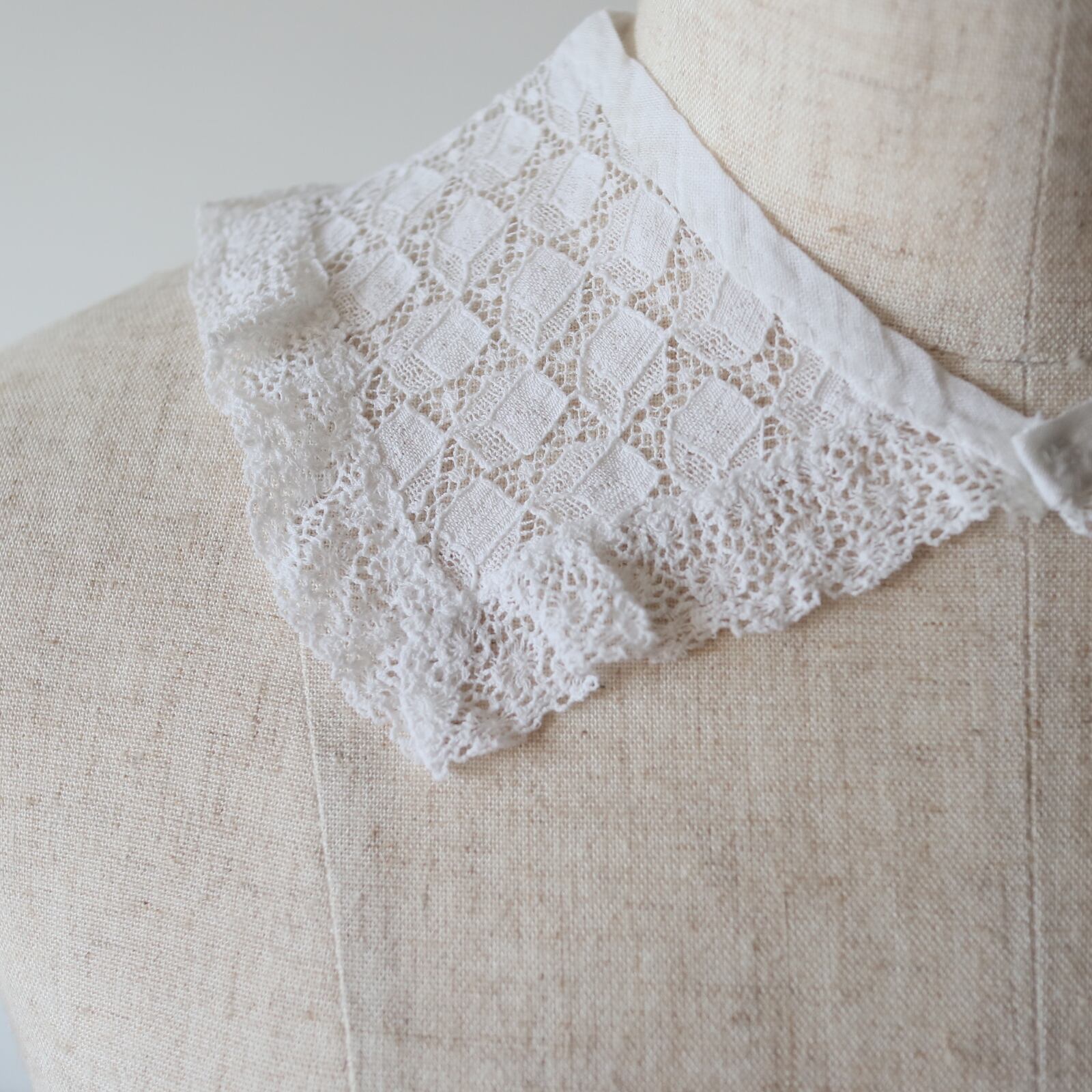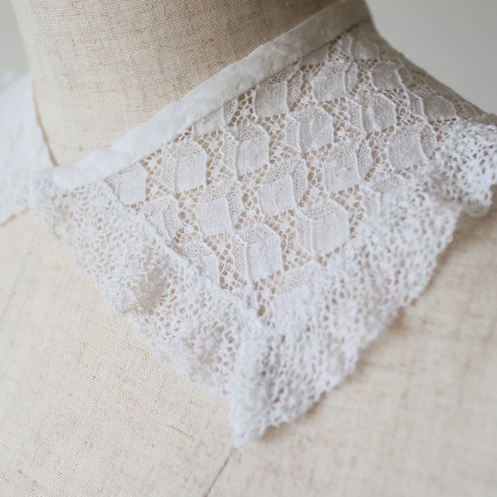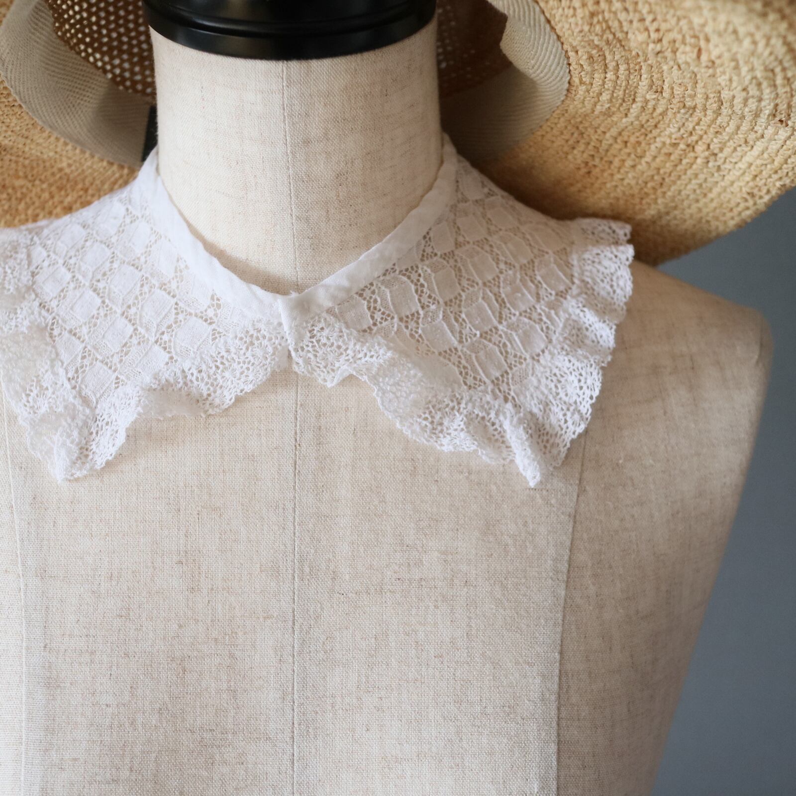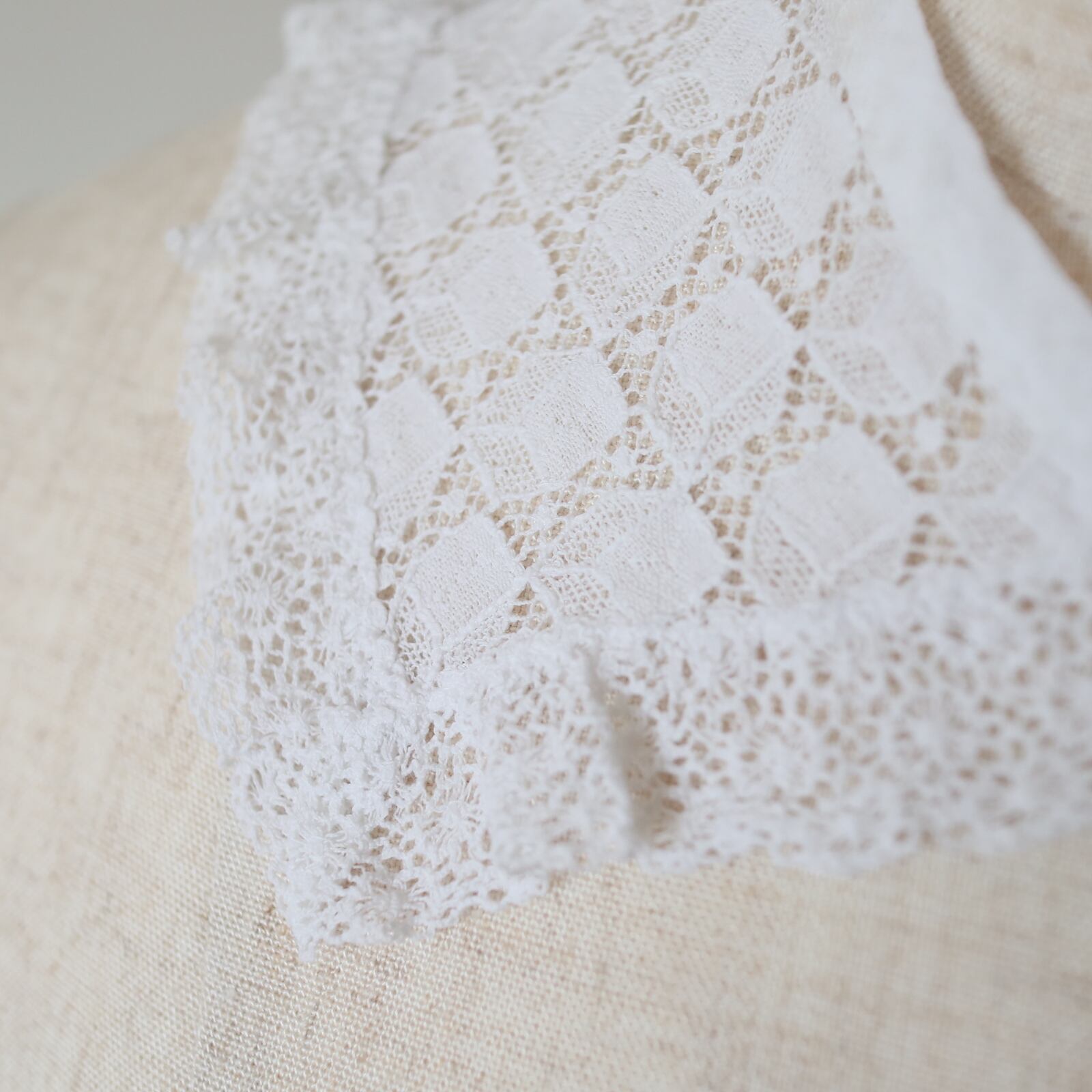 大人気の小さ目ヴィンテージレースカラーです。生地が柔らかくて軽く、サイズが小さめなので主張しすぎず幅広いシーンでお使いいただけます。特別な日だけではなく、普段からご使用になりたい方にもおススメの1枚です。