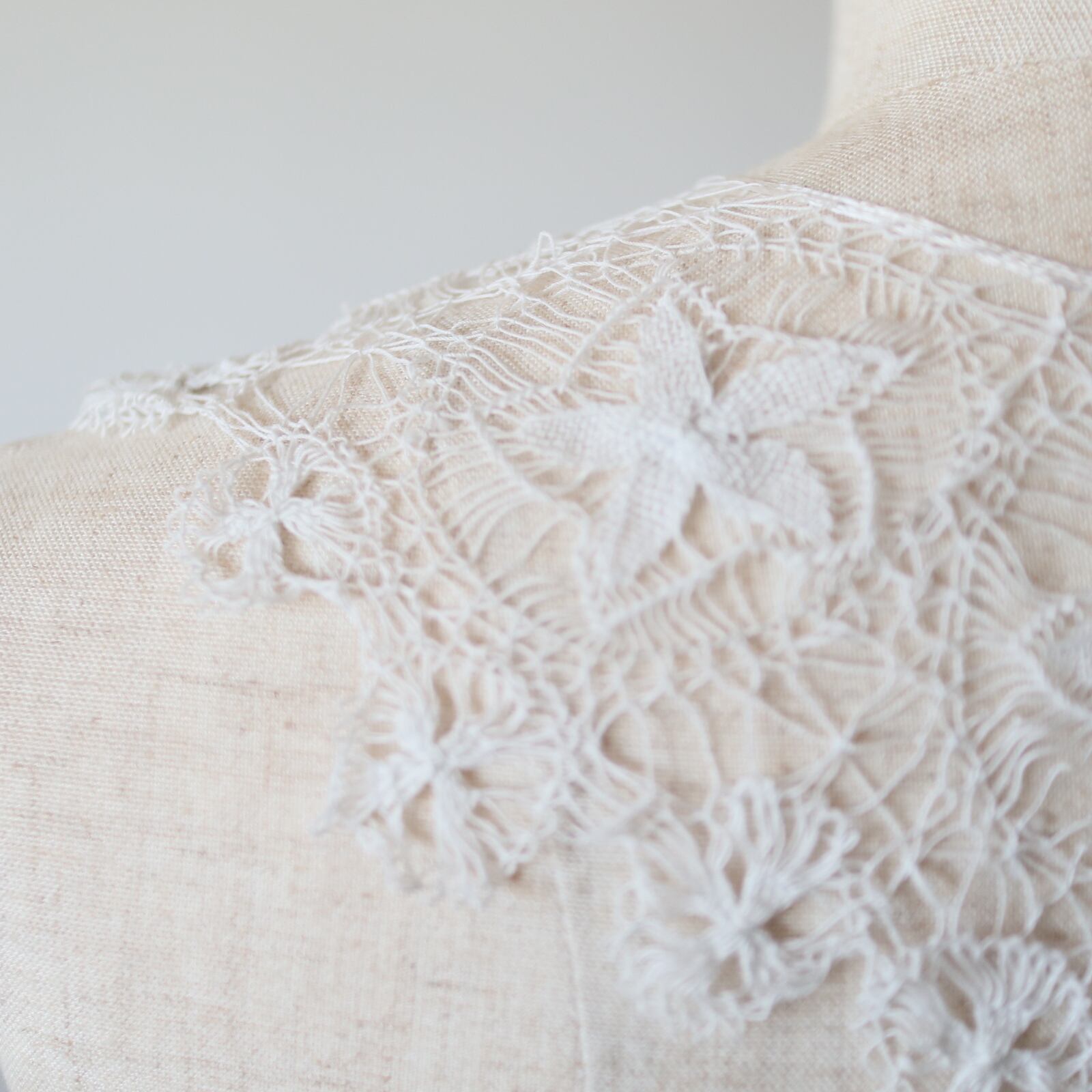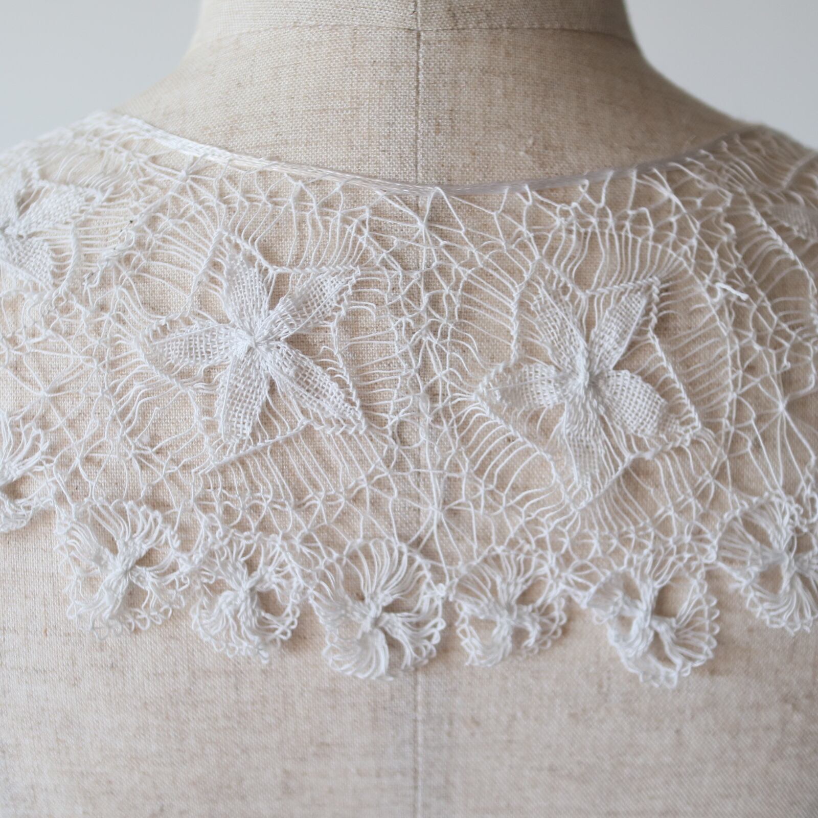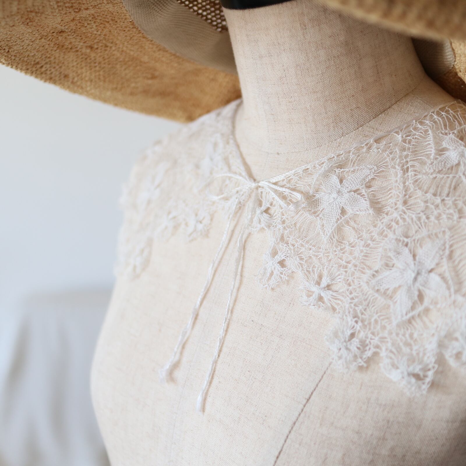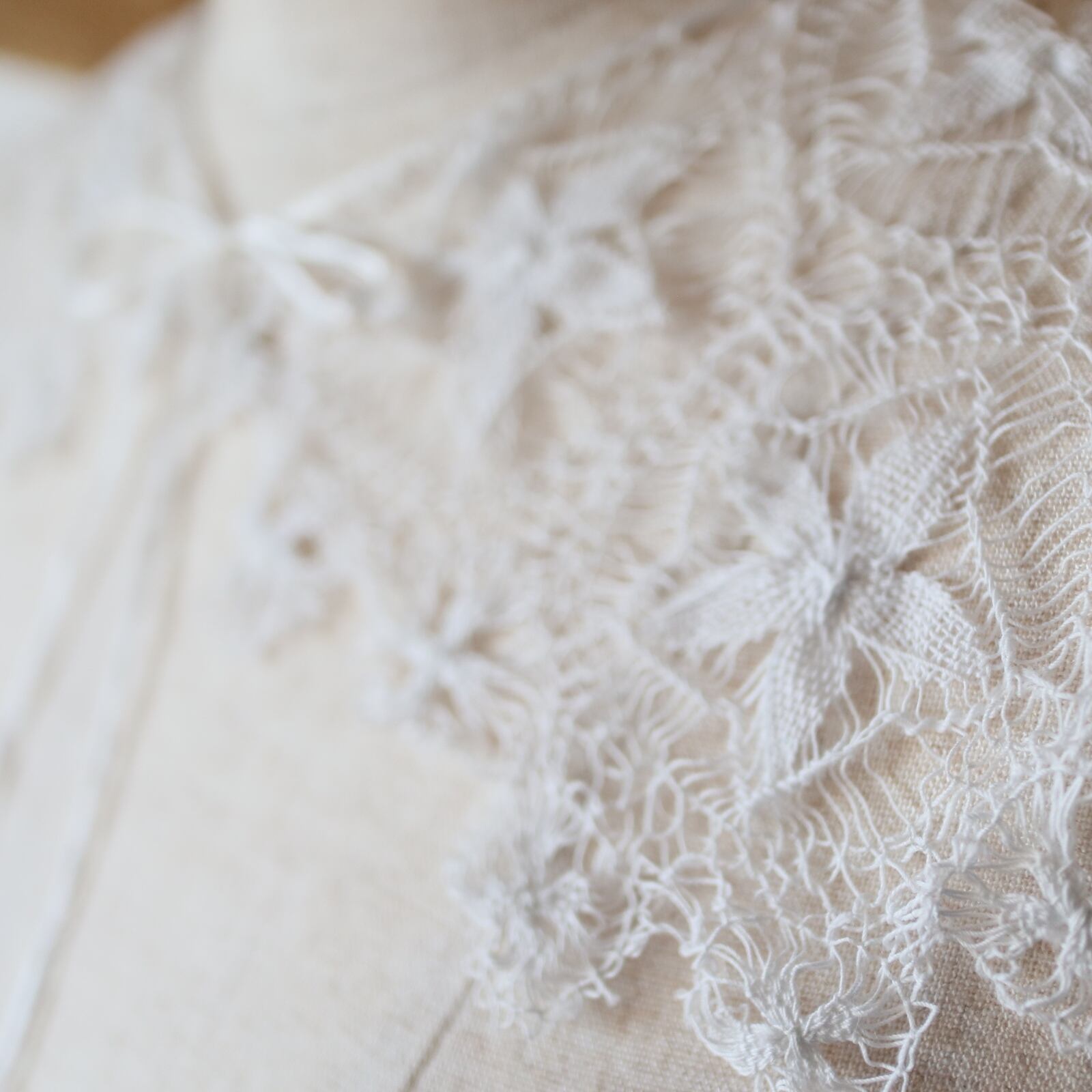 糸だけで編まれたニードルレースがとっても美しいヴィンテージレースカラーです。約100年前に編まれたこちらのつけ襟。繊細で控え目だけど…可愛らしい♡そんなつけ襟をお探しの方に是非おススメです。
