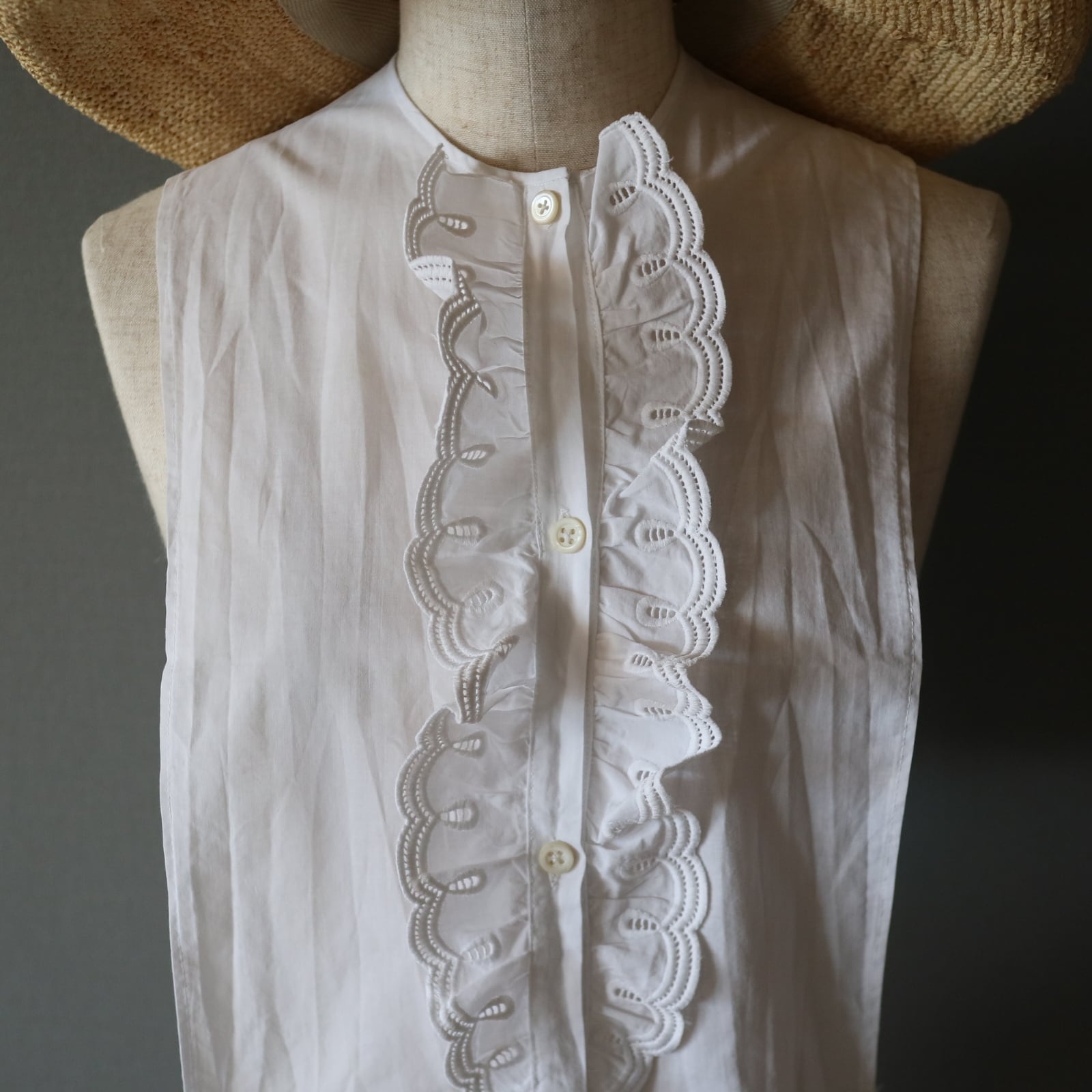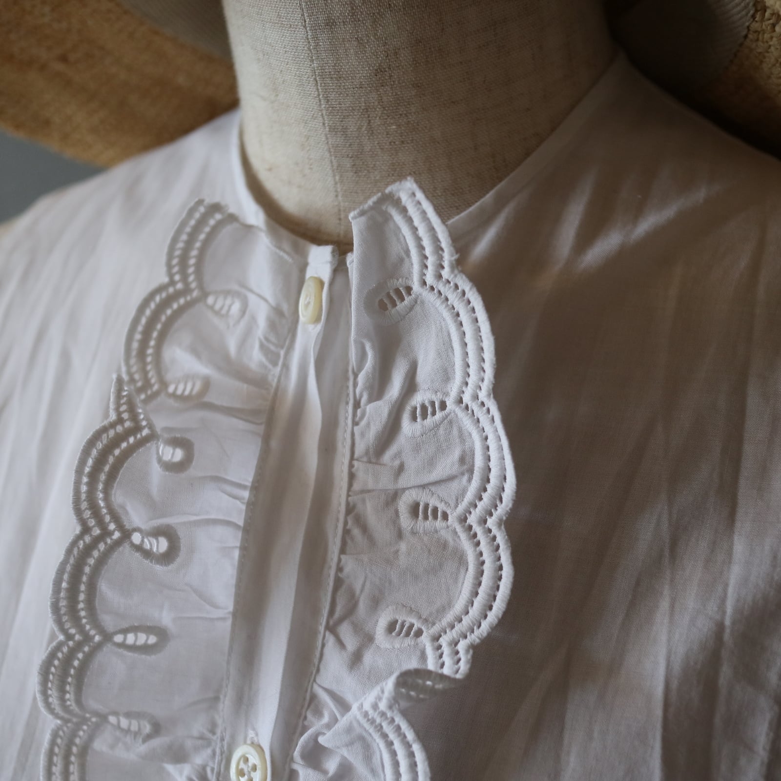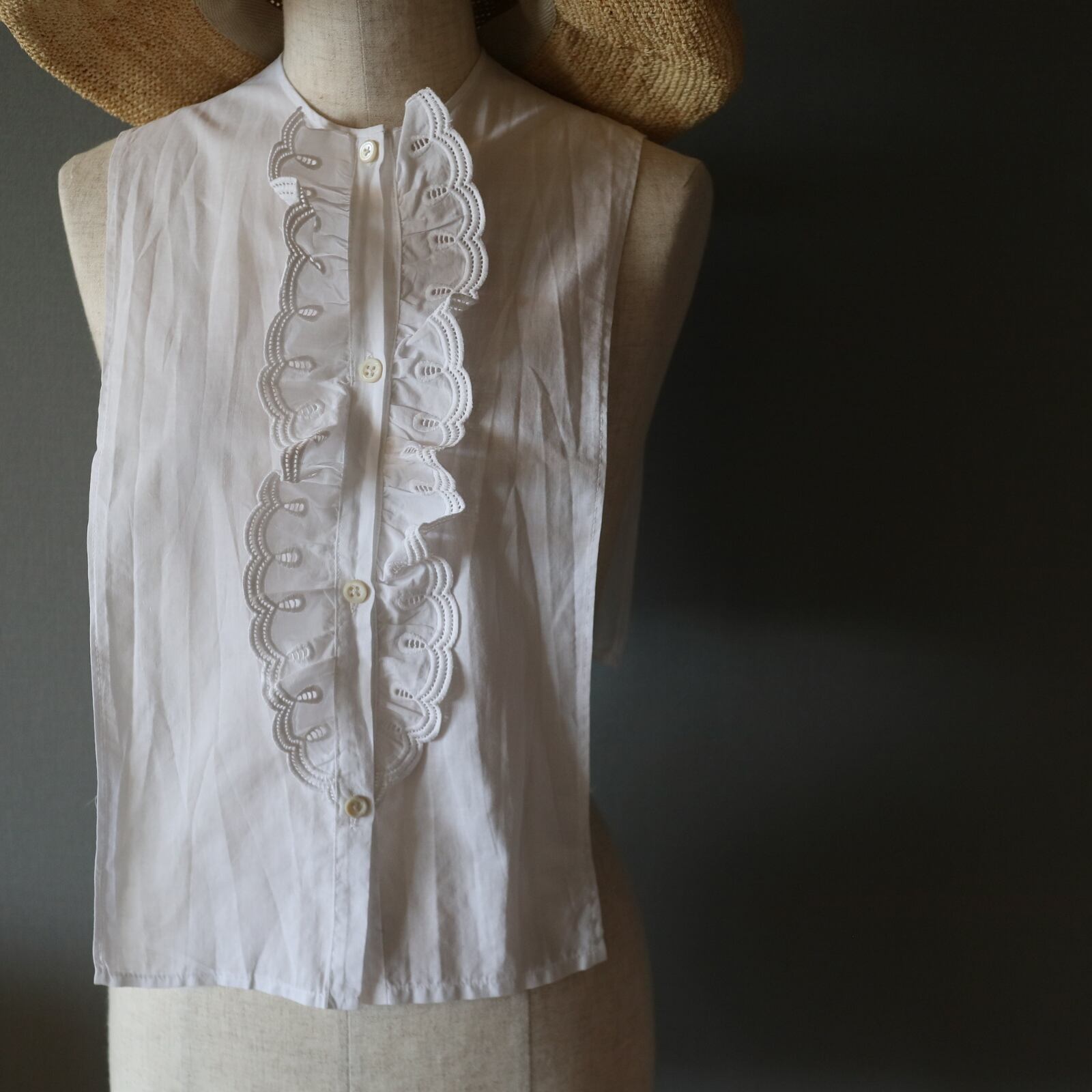 華やかなフリルがとってもかわいいシュミゼットです。1枚足すとコーディネートが一気に華やぐ万能item。約100年も前のものですが、状態も良好です◎シュミゼットをお探しだった方に是非おススメの1枚です。