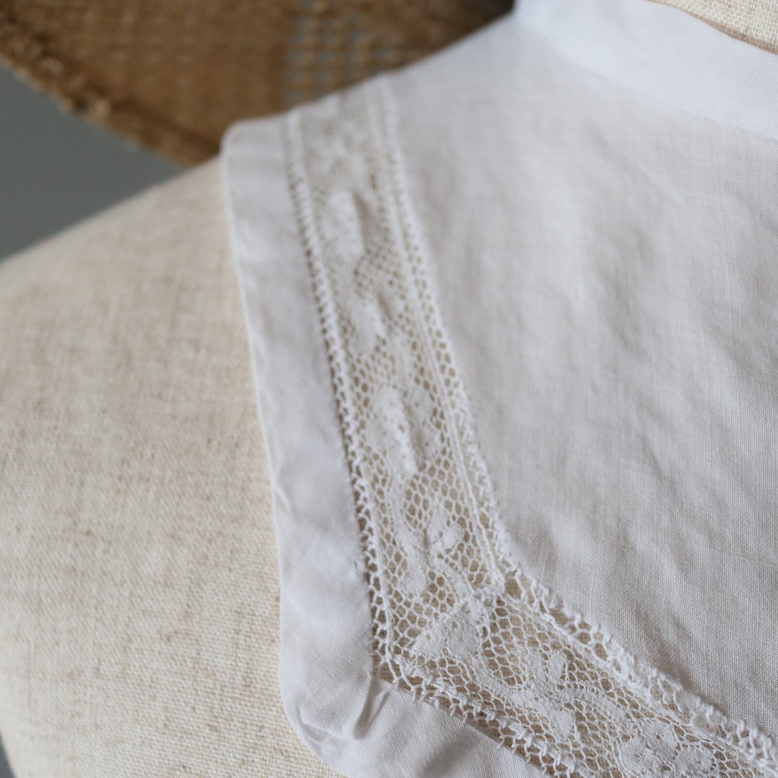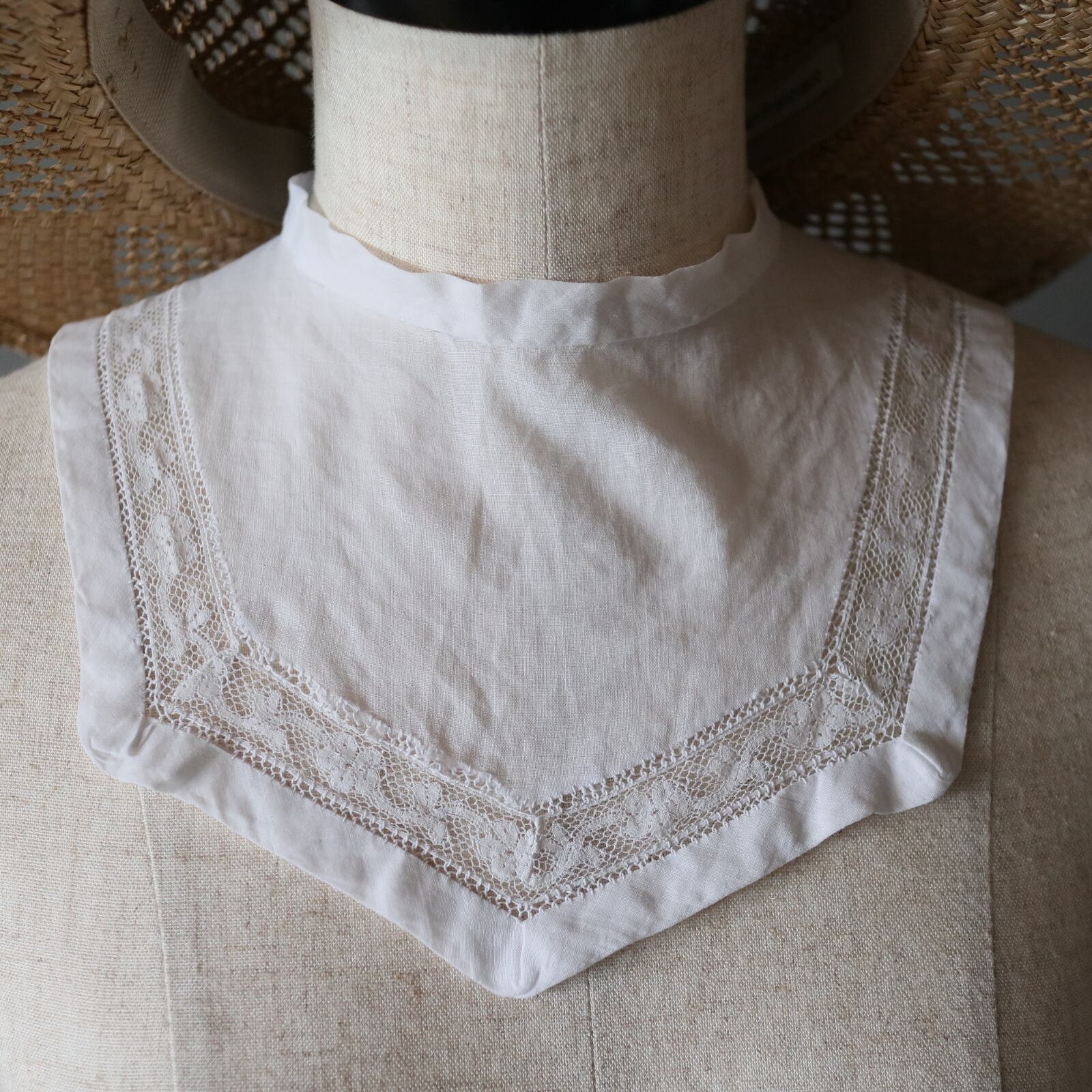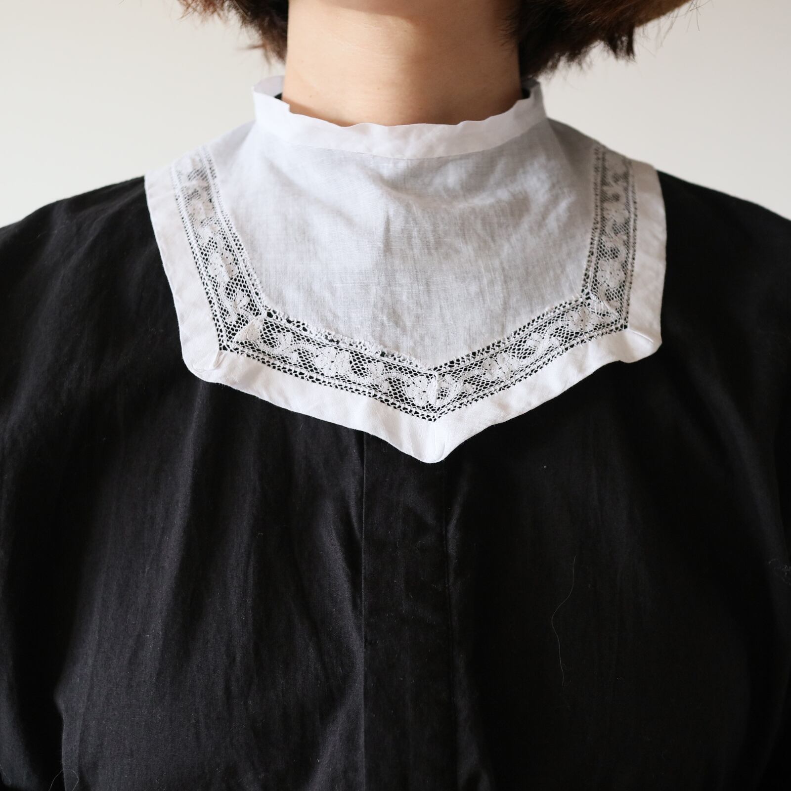 久々に小さめサイズのアンティークつけ襟が入荷しました。スクエア形が可愛らしく、薄い生地感や細いレースなどアンティークがお好きな方にピッタリ♡100年以上前の手仕事で繊細に作られています。店主イチオシの1枚です。